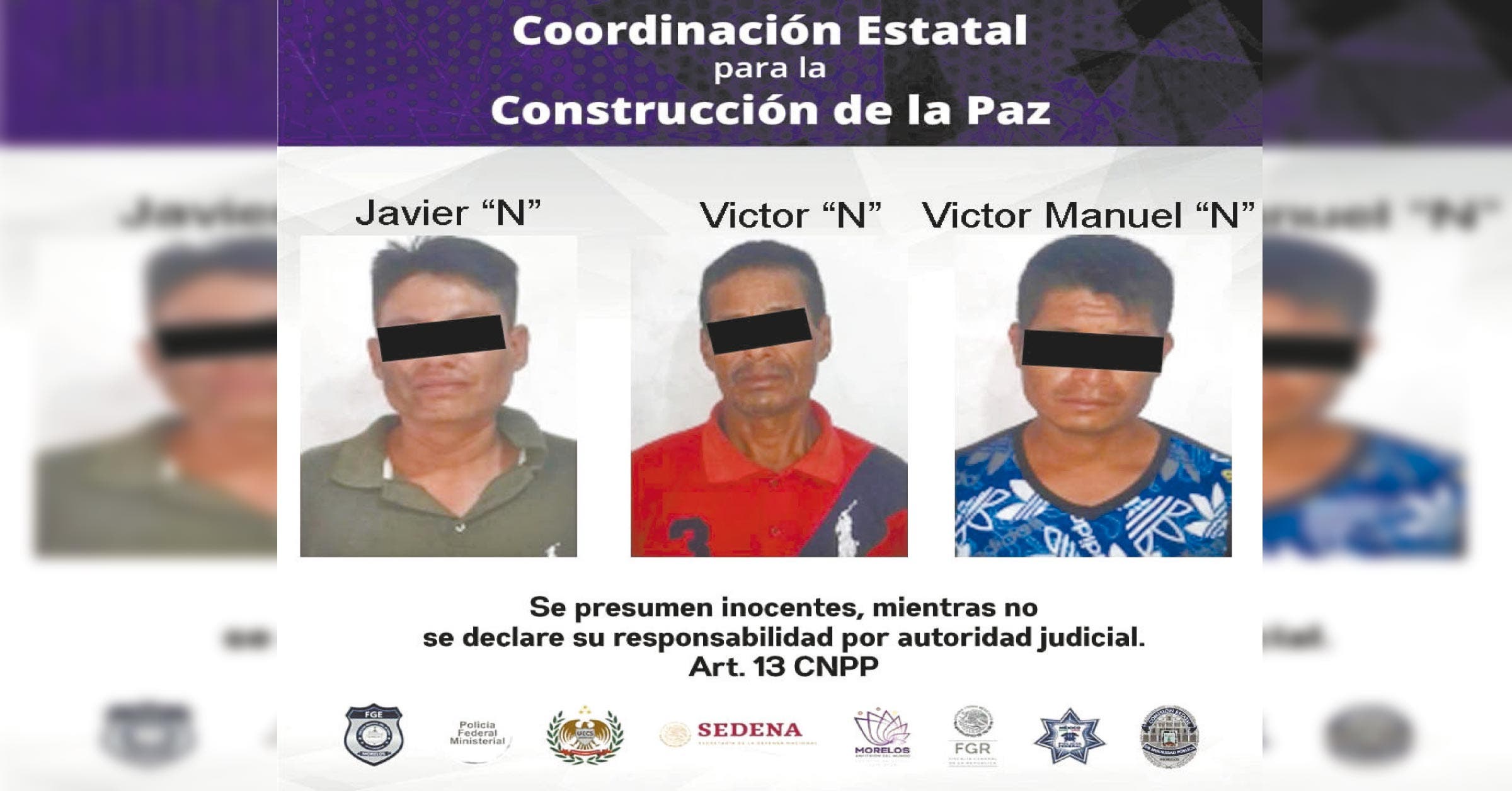 Se trata de Javier, de 36 años; Víctor, de 52; y Víctor Manuel, de 26 años, quienes fueron puestos a disposición del Ministerio Público.