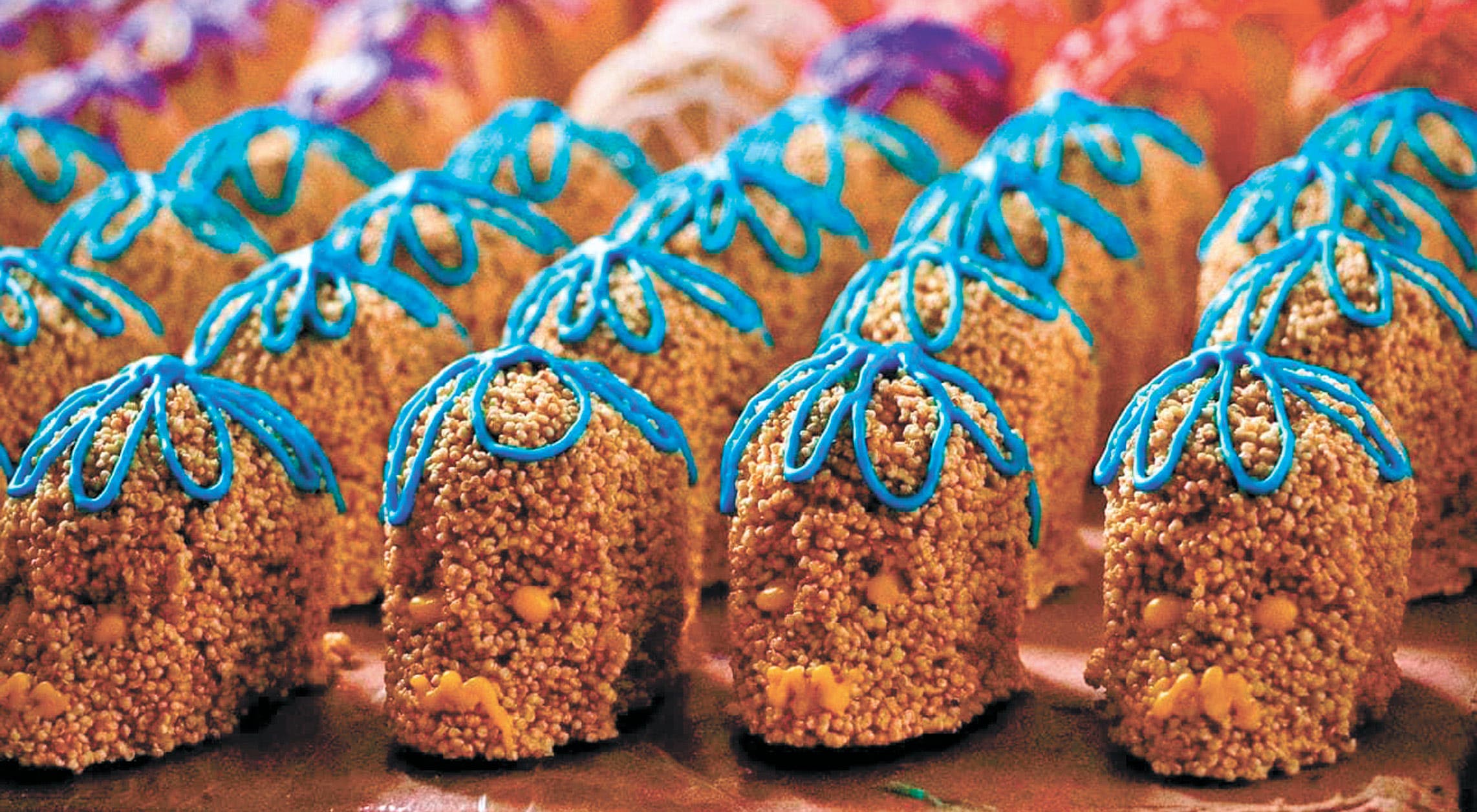 Como las calaveritas de amaranto, las cuales son utilizadas para decorar los altares y ofrendas como parte de la decoración de los hogares, su preparación ancestral de las manos de las y los productores morelenses, da forma al amaranto para verse de una manera extraordinaria.