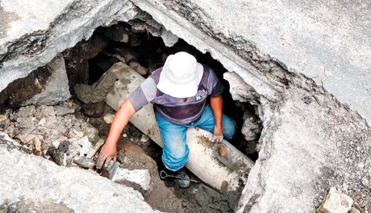 Reforzamiento. Personal del SAPAC sustituye tubería dañada debido a la antigüedad y posterior daño sufrido por corriente pluvial.
