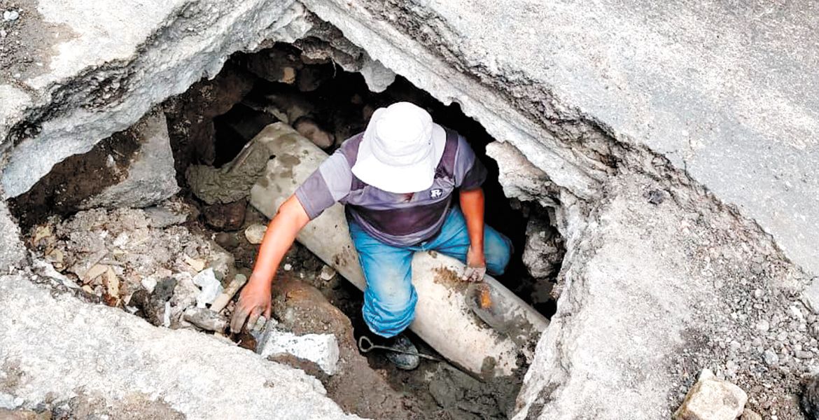Reforzamiento. Personal del SAPAC sustituye tubería dañada debido a la antigüedad y posterior daño sufrido por corriente pluvial.
