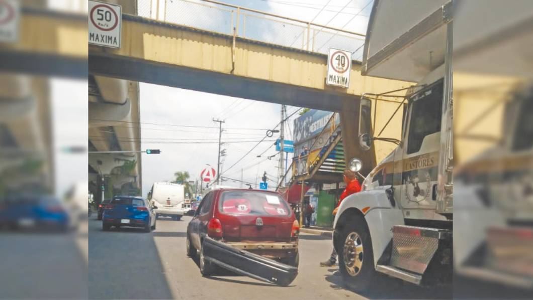 Sin facia trasera quedó un Chevy, color vino, luego de que un camión de la paquetería “Castores” lo impactó en Paseo Cuauhnáhuac, a la altura del crucero de Tejalpa, aunque únicamente se reportaron daños materiales. Por STAFF / DDM