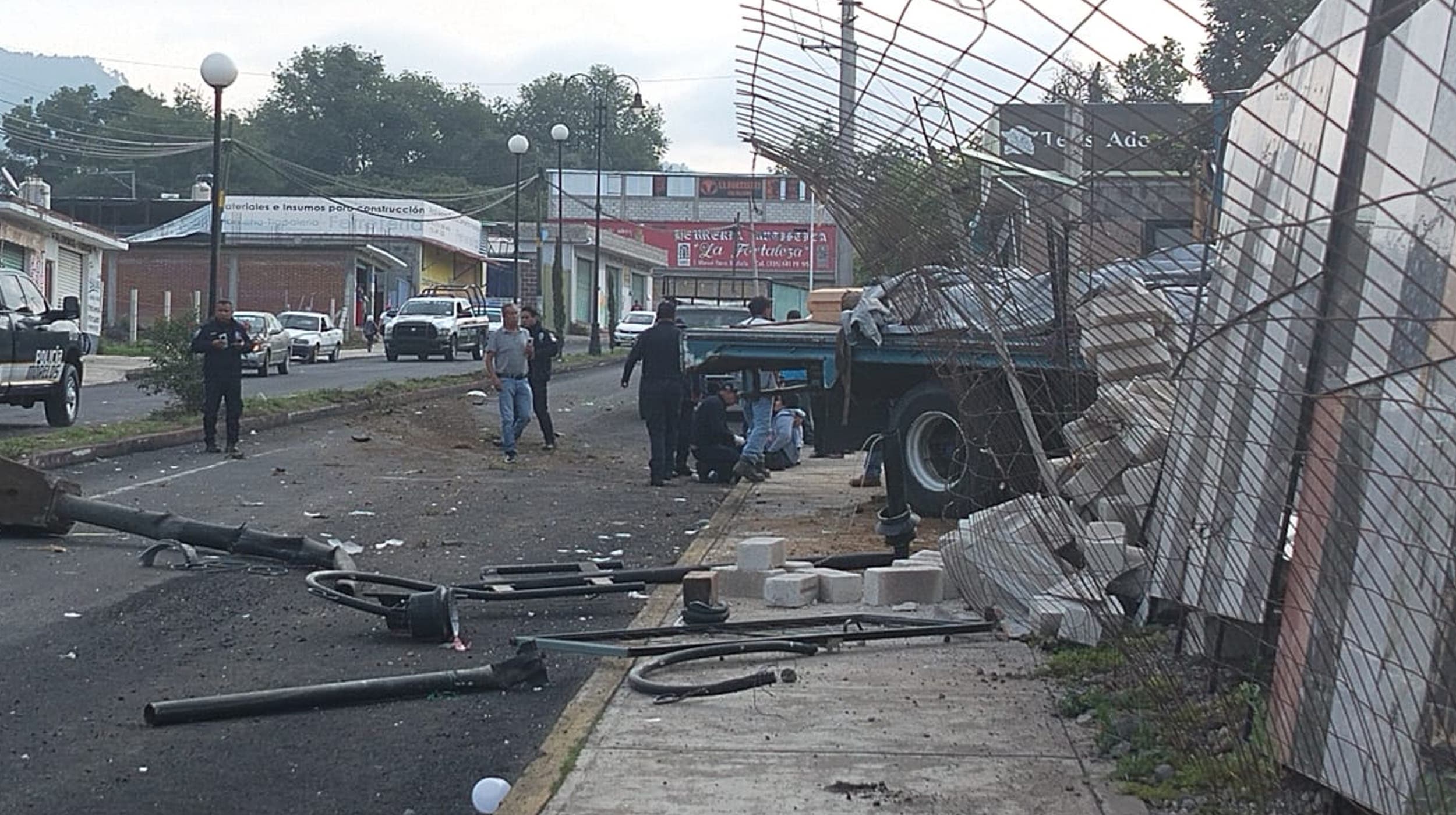 Un camión tipo tortón se quedó sin frenos en la Av. López Avelar, en Tetela del Volcán, y terminó estrellándose en Metepec, Ocuituco.