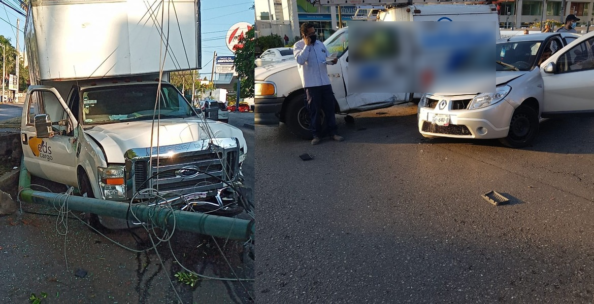 Tras el impacto, el Renault a su vez impactó a otra camioneta de Telmex.