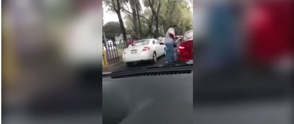En redes sociales circula el momento en que un sujeto armado amaga al conductor de un automóvil detenido en el tráfico de Canal de Miramontes entre La Virgen y Taxqueña.
