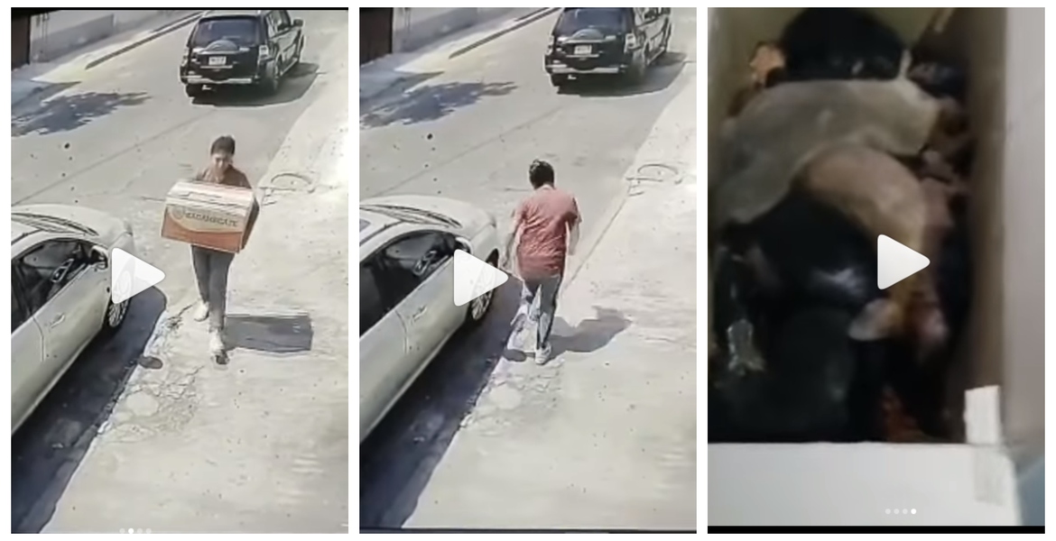 Fue a través de Instagram donde un equipo que se encarga de ayudar a perros en situación vulnerable dio a conocer las imágenes grabadas por una cámara de seguridad, en donde se aprecia a una mujer bajar de una camioneta con una enorme caja entre las manos.