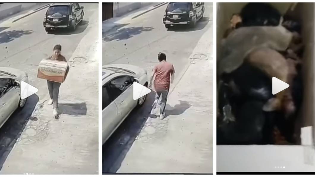 De acuerdo con la fuente que reveló el clip, el contenido del paquete eran varios cachorros que terminaron muertos por asfixia, pues fueron encerrados en la estrecha caja que además contuvo el calor.