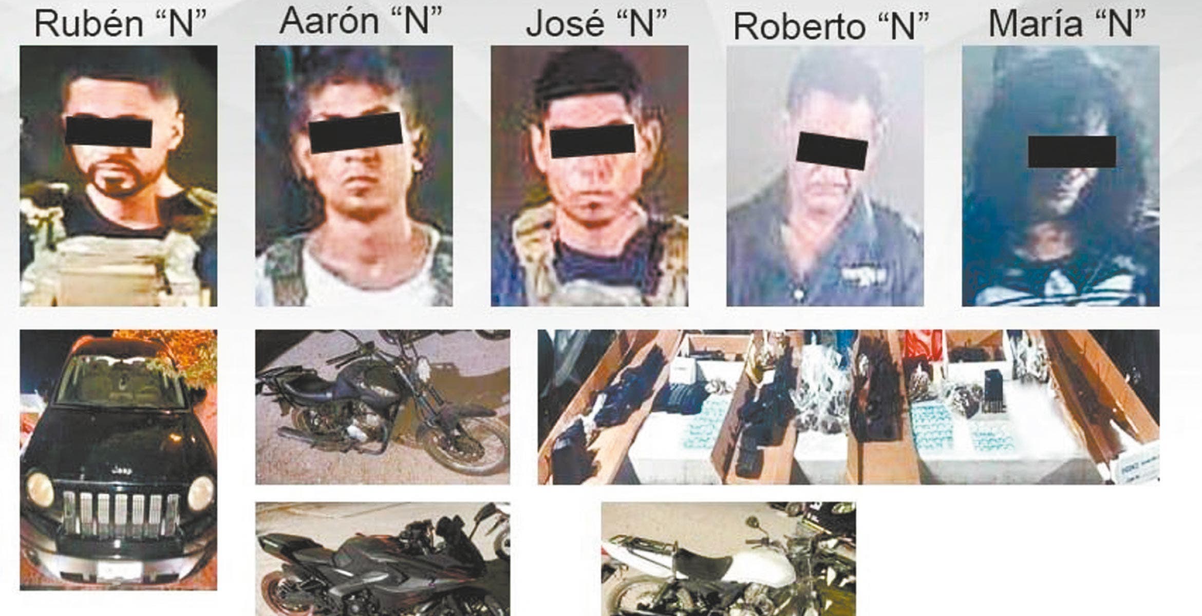 Los detenidos fueron identificados como Rubén, de 30 años; Aarón, de 26; José, de 25; Roberto, de 46 años; María Dolores, de 30; y un menor de 17 años, quienes fueron remitidos al Ministerio Público por al menos cuatro delitos.
