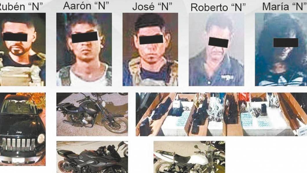Los detenidos fueron identificados como Rubén, de 30 años; Aarón, de 26; José, de 25; Roberto, de 46 años; María Dolores, de 30; y un menor de 17 años, quienes fueron remitidos al Ministerio Público por al menos cuatro delitos.
