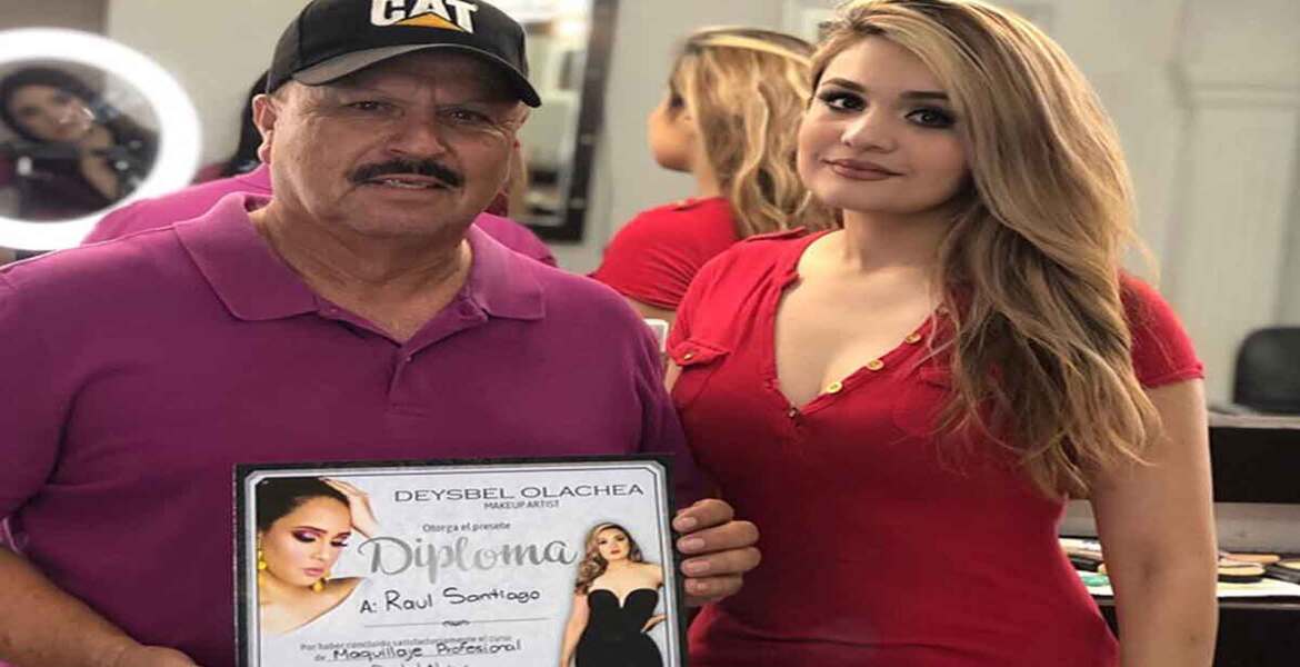 En las fotos que compartió la joven se ve al señor Raúl maquillando a varias modelos y agarrando un diploma entre sus manos.
