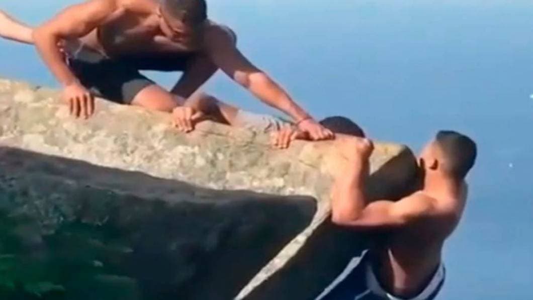 Afortunadamente los otros dos turistas se dieron cuenta de que el hombre no podía subir por sus propios medios y corría el riesgo de caer al vacío, por lo que tendieron sus manos y lo ayudaron a volver a subir a la piedra.