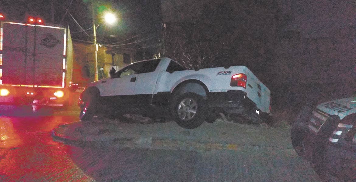 A punto de volcar quedó una camioneta Ford, color blanco, tras quedarse dormido el conductor y subirse a la banqueta, presuntamente debido al estado etílico en que se encontraba, cuando circulaba por la calle Janitzio y Guayabos, de la colonia Arboleda Chipitlán, en Cuernavaca.