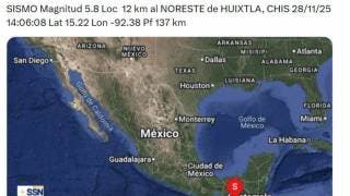 Sismo de magnitud 5.8 sacude Chiapas; epicentro al noreste de Huixtla, sin daños reportados hasta el momento