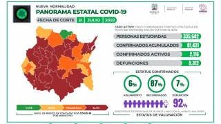 Son 2 mil 116 casos activos de Covid19 al momento en Morelos