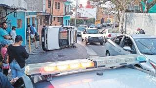 Jiutepec, MORELOS.- Un hombre resultó herido al volcar su auto, tras chocar contra un barrote de metal, cuando viajaba con su pareja e hija, por la avenida Cuernavaca, de la colonia Atlacomulco, en Jiutepec. Derivado del percance el conductor del auto sufrió una lesión en una mano, por lo que fue atendido por paramédicos, pero se negó a ser trasladado a un hospital.