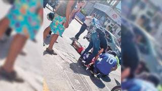 Un motociclista de nombre Marco Antonio, de 15 años, resultó con lesiones en la cabeza, tras ser arrollado por un camión cañero en el crucero del poblado de Atlacholoaya, en Xochitepec.