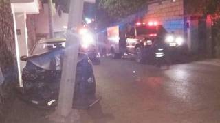 Abandonan un auto tras chocar contra poste en Cuernavaca