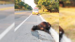 Choca ruta contra vaca y la mata en la autopista Cuernavaca-Acapulco