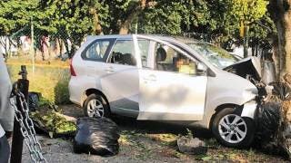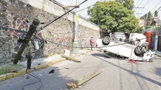 Un auto Spark gris terminó con el costado izquierdo sumido, tras ser impactado por una camioneta Ford-Ecosport, color vino, en la esquina de las avenidas De Los 50 Metros y Centenario, en la colonia Civac, en Jiutepec.