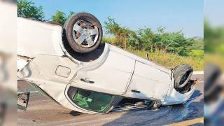Yautepec, MORELOS.- Una carambola en la que se vieron involucrados por lo menos cuatro vehículos, uno resultó volcado, arrojó dos personas lesionadas. Esto sucedió sobre la carretera Cuautla-Cuernavaca, a la altura del Cañón de Lobos, en los límites entre Yautepec y Jiutepec, como consecuencia del exceso de velocidad y una falla en el sistema de frenado.