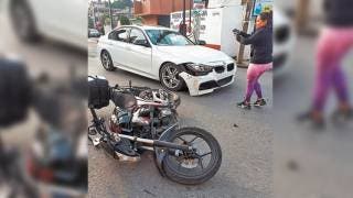 Un motociclista resultó herido al ser impactado por atrás presuntamente por un taxista que escapó del lugar, y proyectado contra un vehículo BMW, en la avenida Ahuatepec esquina con la calle Nueva Suecia, en la colonia Lomas de Cortés, en Cuernavaca.