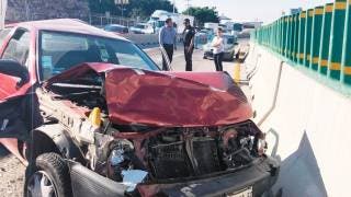 Por no haber sido detenido en el crucero del entronque del Paso Express hacia la avenida Diana, un auto tipo Spark fue chocado por un taxi tipo Gol. De acuerdo con autoridades, sólo hubo daño en los vehículos. Foto: Especial/DDM