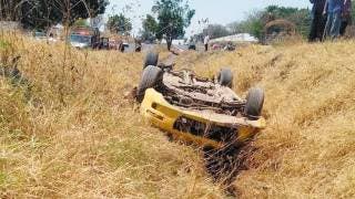 Vuelca coche y salen 2 heridos en el Paso Express
