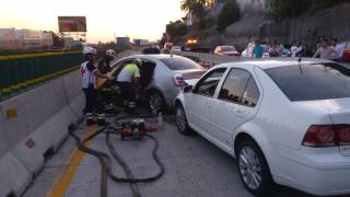 Queda prensada al chocar en el Paso Express Una mujer resultó prensada cuando el auto en el que viajaba perdió el control y se estrelló contra los muros de contención en el Paso Express. El accidente se registró esta tarde, a la altura del kilómetro 98, con dirección a Acapulco, en los carriles centrales. La lesionada es una mujer de 40 años, que resultó policontundida.