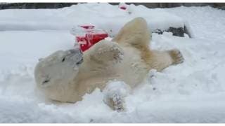 Oso Polar de zoologico, disfruta a lo grande, la terrible nevada de Texas