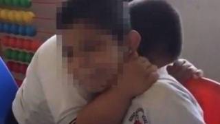 Niño autista es consolado por su amigo, un pequeño con síndrome de down