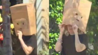 Sara Salazar, viuda de José José sale a la calle con bolsa de papel en la cabeza