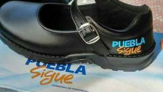 Reparten zapatos a estudiantes con logo del gobierno de Puebla