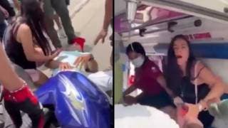 Mujer patea ambulancia donde iba novio malherido porque no le dio la clave del celular