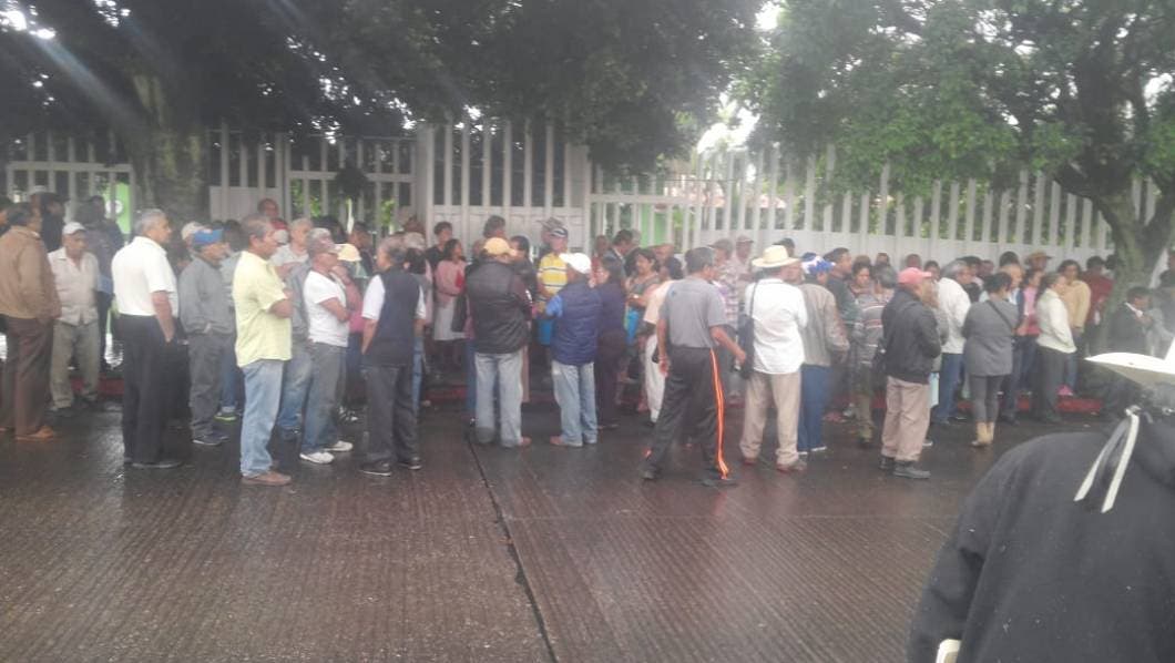 Miembros y jubilados pertenecientes a la Asociación Nacional de Usuarios de Energía Eléctrica (ANUEE) se manifiestan en estos momentos afuera de las instalaciones de la CFE, ubicada en avenida Gobernadores.
