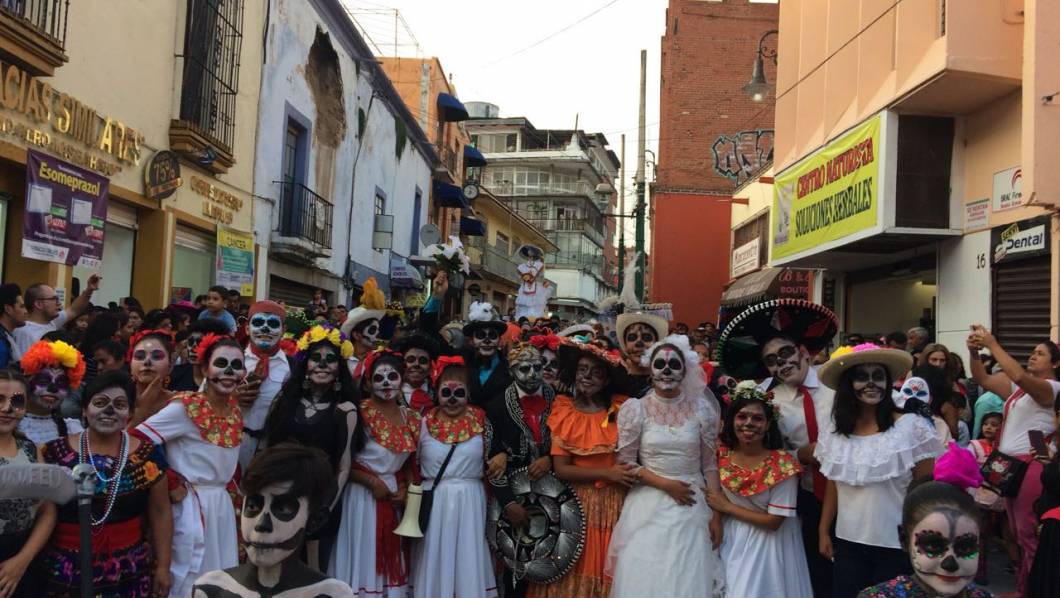 Un magno desfile de catrinas recorrió ayer las calles del Centro de Cuernavaca, como parte de las actividades en honor a los Fieles Difuntos.