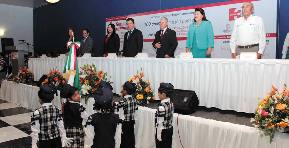 Cuernavaca, MORELOS.- Autoridades educativas del Estado de Morelos conmemoraron la vigencia del Artículo Tercero Constitucional, como garantía social y de desarrollo, ante la convocatoria hecha por la Sección 19 del Sindicato de Trabajadores de la Educación.