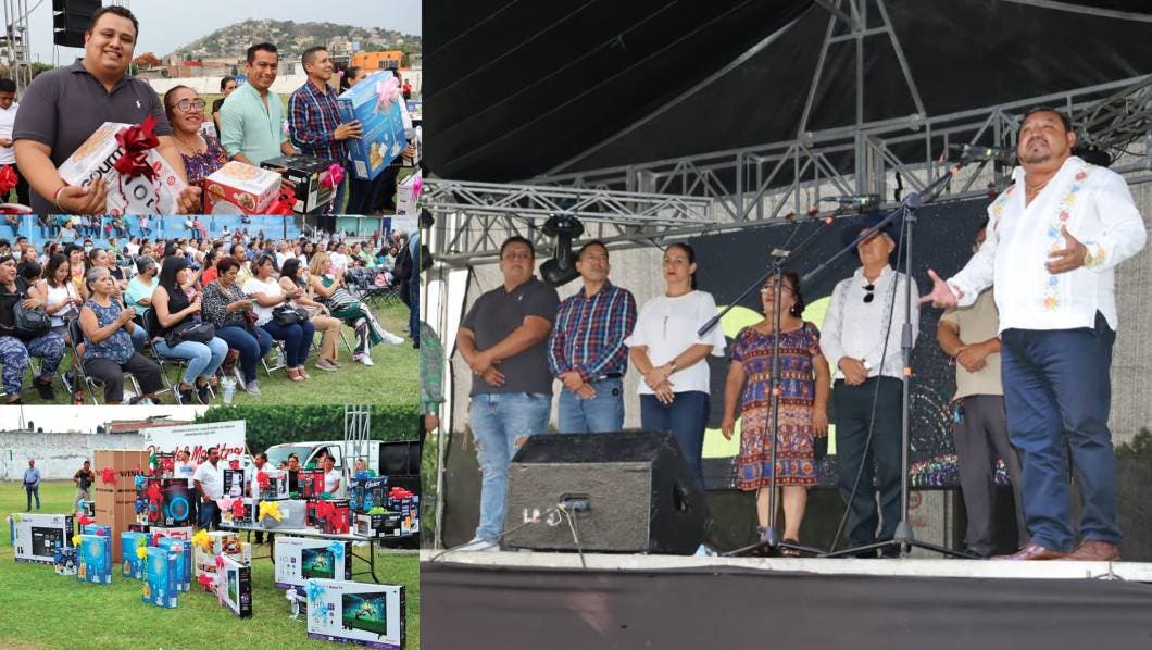 En el marco del Día del maestro, autoridades del Ayuntamiento de Temixco festejaron a profesores en la cancha de fútbol de la Delegación de Acatlipa.