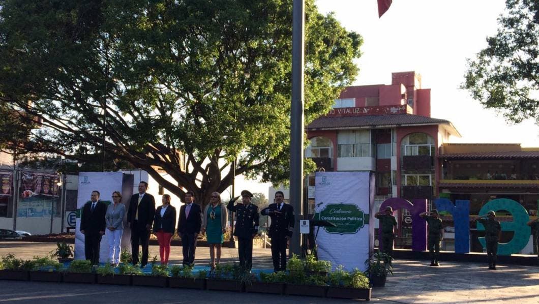 Ayer, en la explanada de la plaza de armas "General Emiliano Zapata Salazar" para conmemorar los 100 años de la creación de la Constitución Política se reunieron representantes de los tres Poderes de Gobierno encabezados por Matías Quiroz Medina, secretario de Gobierno; María del Carmen Verónica Cuevas López, magistrada presidenta del Tribunal Superior de Justicia y Julio Yañez Moreno, representando al Congreso del Estado.