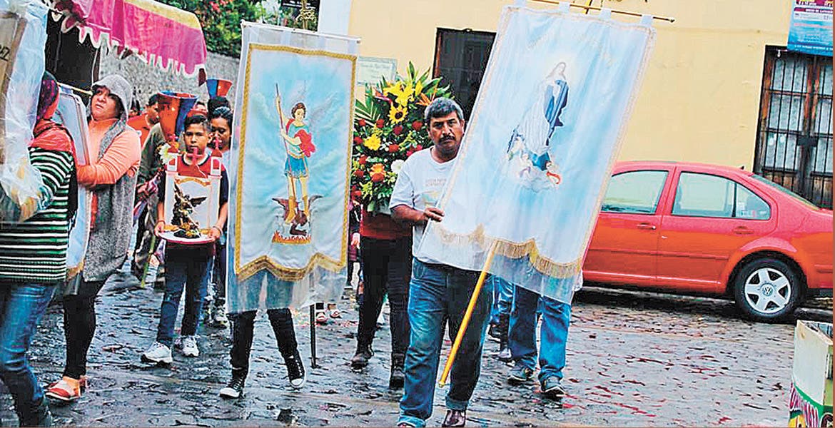 Ayer se realizó el festejo al santo patrono de San Miguel Arcángel, en el poblado de Acapantzingo, y a pesar de la pertinaz lluvia que duró toda la mañana, cientos de pobladores y visitantes se volcaron desde temprano a la capilla de San Miguel Arcángel; apenas clareaba el alba, cuando la gente, una estudiantina y la Banda Rivera, entonaron las tradicionales Mañanitas a su santo patrono “San Miguel Arcángel”, después la gente hizo una caravana por las calles aledañas a la iglesia, con estandartes con la imagen de su santo patrono.