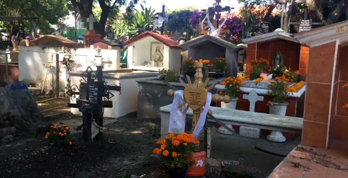 En muchos otros municipios como en Cuernavaca se mantienen cerrados prácticamente varios días. Pueden ustedes observar las tumbas del panteón de Jiutepec, está muy bien el mantenimiento hay flores de Cempasúchil, no hay veladoras en prácticamente ninguna tumba por lo mismo que no pudieron venir a hacer esta ofrenda en forma.