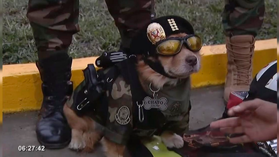 Chato es un talentoso agente canino de la Dirección Nacional de Operaciones Especiales (Dinoes) que también brinda apoyo a la División de Intervenciones Rápidas (Dirinrap). Además, el perro policía ha saltado en paracaídas para cumplir algunos objetivos.