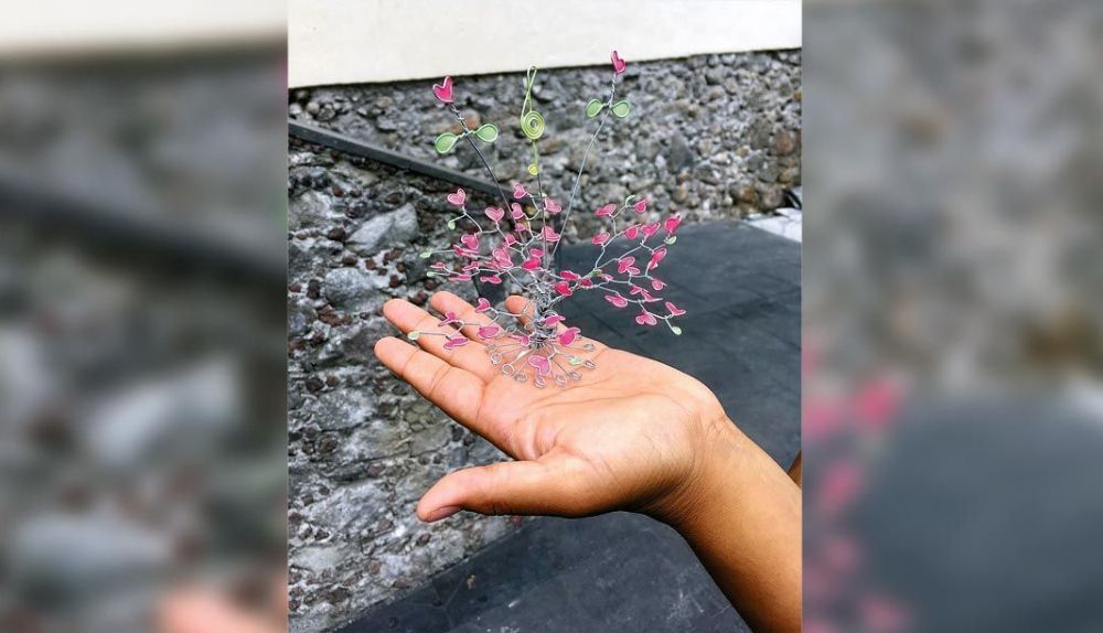 "Son alambres pal hambre", así describe su trabajo, el cual ha enseñado en varios puntos del país y en otros lugares de América Latina, al recordar que vio a una persona realizar árboles con cobre y él decidió hacerlo para solventar sus gastos.
