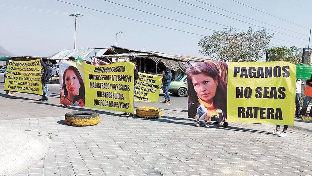 un grupo de ex trabajadores llevaban para exigir a la ex diputada Hortencia “N” el pago de sus salarios.