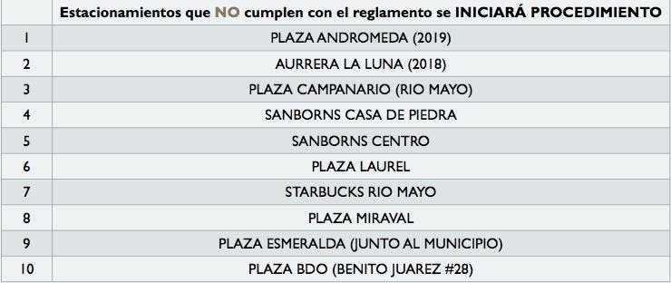 Indicó que se han establecido criterios al día de hoy hay 30 estacionamiento que dan una hora y dos horas o que ya levantaron las plumas. A estos se está invitando para que los ciudadanos acudan.