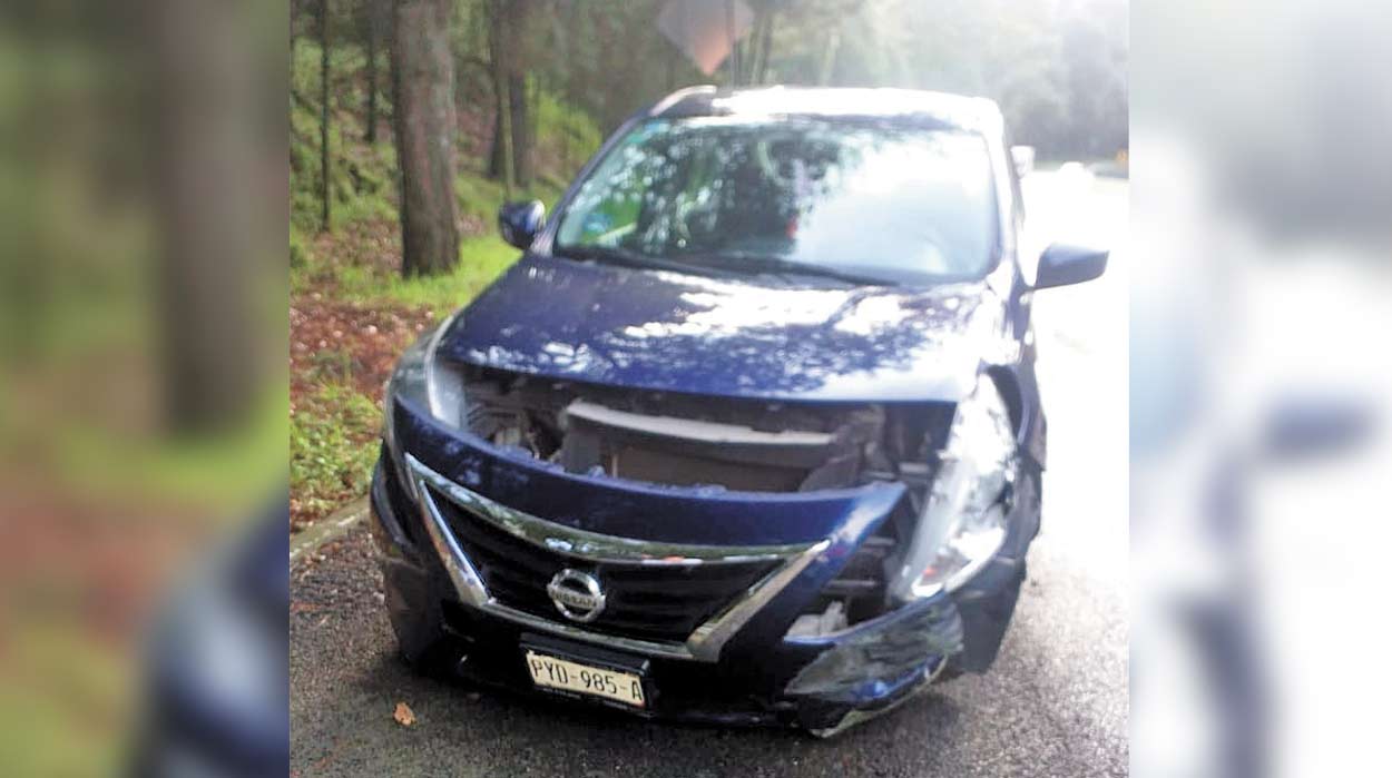 Debido al exceso de velocidad y la falta de precaución, un vehículo Nissan Versa sufrió severos daños luego de que su conductor perdió el control y se impactó contra el muro central de la Autopista México-Cuernavaca, a la altura del poblado de Coajomulco.