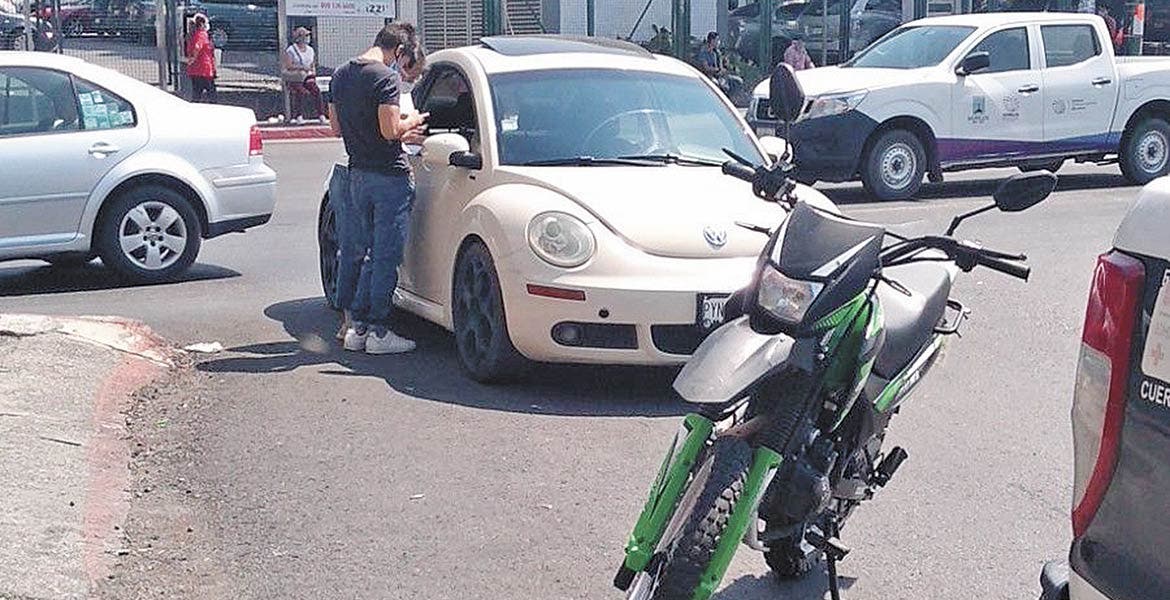 Con un brazo lastimado acabó el conductor de una moto Italika verde, tras chocar contra un auto Volkswagen-Beetle, color beige, cuando circulaban por la avenida Plan de Ayala, a la altura del hospital del IMSS, en Cuernavaca, por lo que fue atendido por paramédicos del ERUM, pero a pesar de sus heridas no quiso ser trasladado a un hospital.