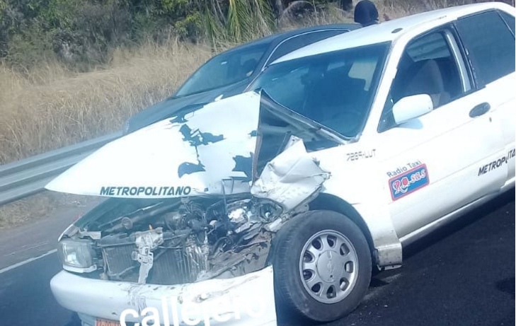 Un taxi terminó destrozado, tras chocar contra otro vehículo, cuando circulaba por la autopista México-Acapulco, a la altura del fraccionamiento Burgos, en Temixco, por lo que elementos de la Policía Federal (PF) División Caminos tomaron conocimiento.