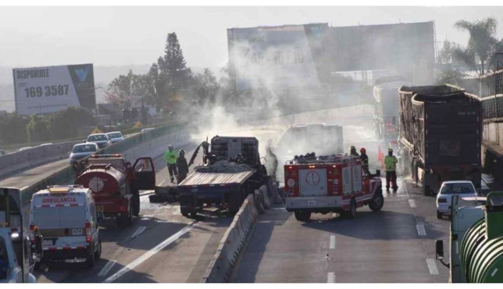 Un camión de carga se estrelló contra el muro de contención en el Paso Exprés y se incendió, lo que provocó el cierre parcial del carril central en dirección al Puerto de Acapulco.