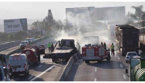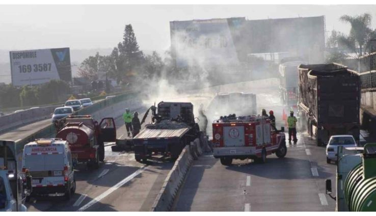 La Subsecretaría de Protección Civil de Cuernavaca, a través de su Cuerpo de Bomberos atendió el reporte de un tractocamion, incendiándose, en la Autopista km. 84.5 Col. Antonio Barona.