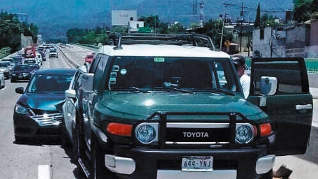 Un Chevy gris terminó con la cajuela destrozada tras ser impactado por una camioneta Nissan gris, y proyectado contra un auto Volkswagen-Vento, cuando circulaban por el Paso Express, cerca de la entrada a una conocida plaza, en la colonia Del Lago, en Cuernavaca.