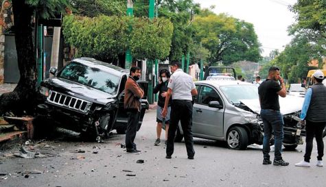 Ahí, justo al atravesar la avenida, el auto fue impactado en el costado frontal derecho por la camioneta Cherokee negra.